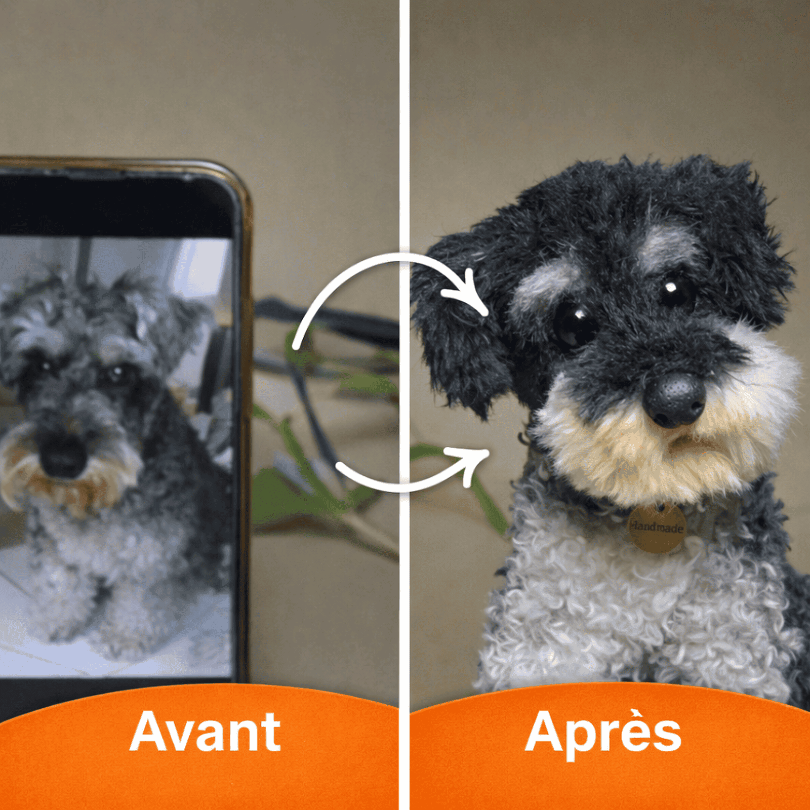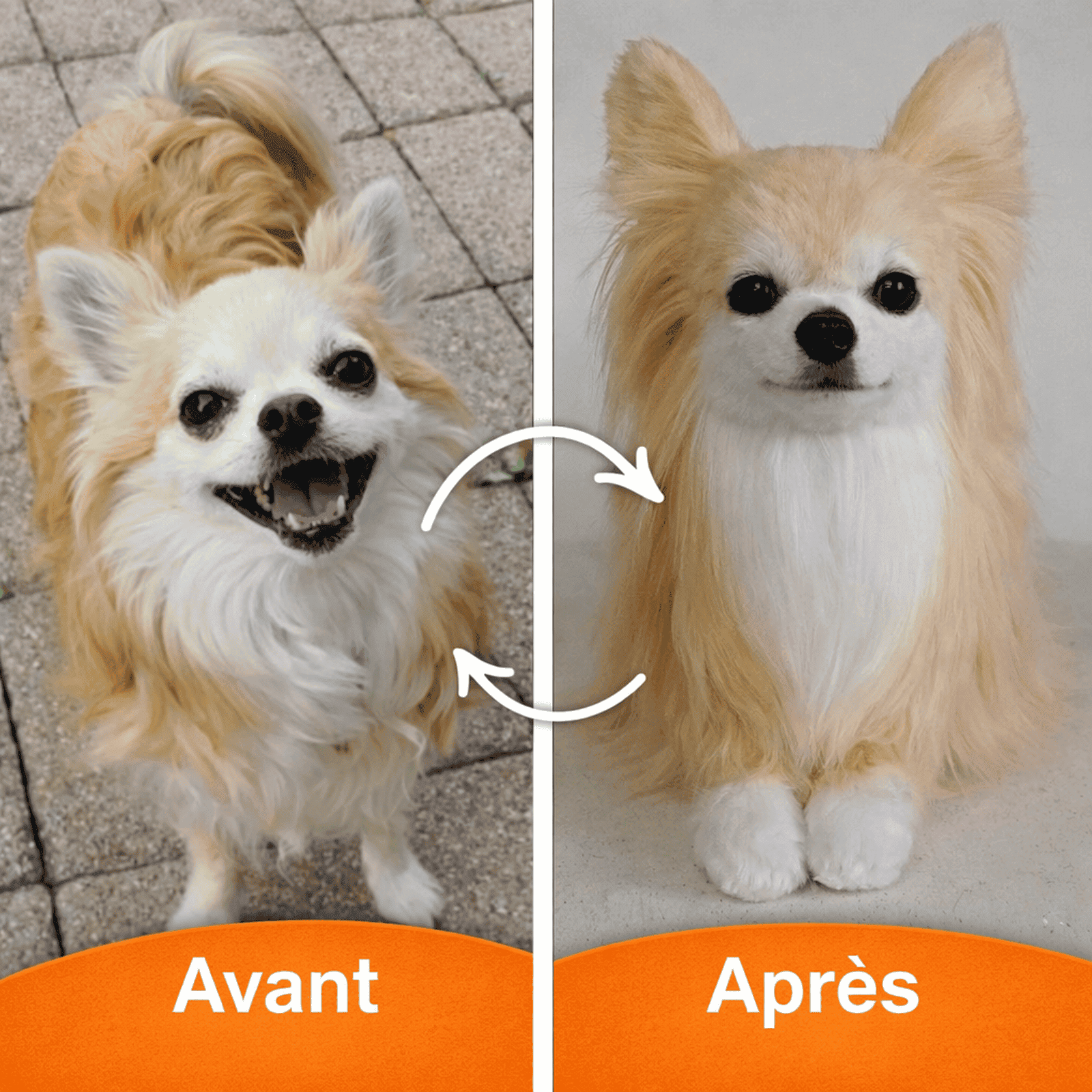 Si quelque chose ne vous convient pas, notre Artisan peut effectuer jusqu’à 3 retouches gratuites afin d’obtenir un résultat parfaitement fidèle à votre compagnon — un service unique et inédit dans le monde de la peluche personnalisée.